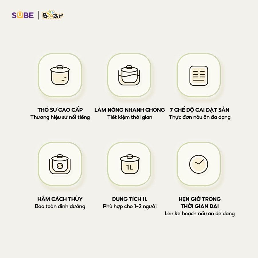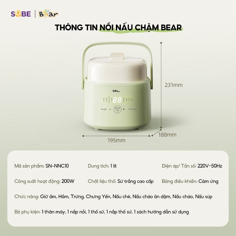 🐻 Nồi Nấu Chậm 1.0L Bear SB-NNC10 – Trợ Thủ “Vàng” Của Mẹ Việt Hiện Đại! ✨